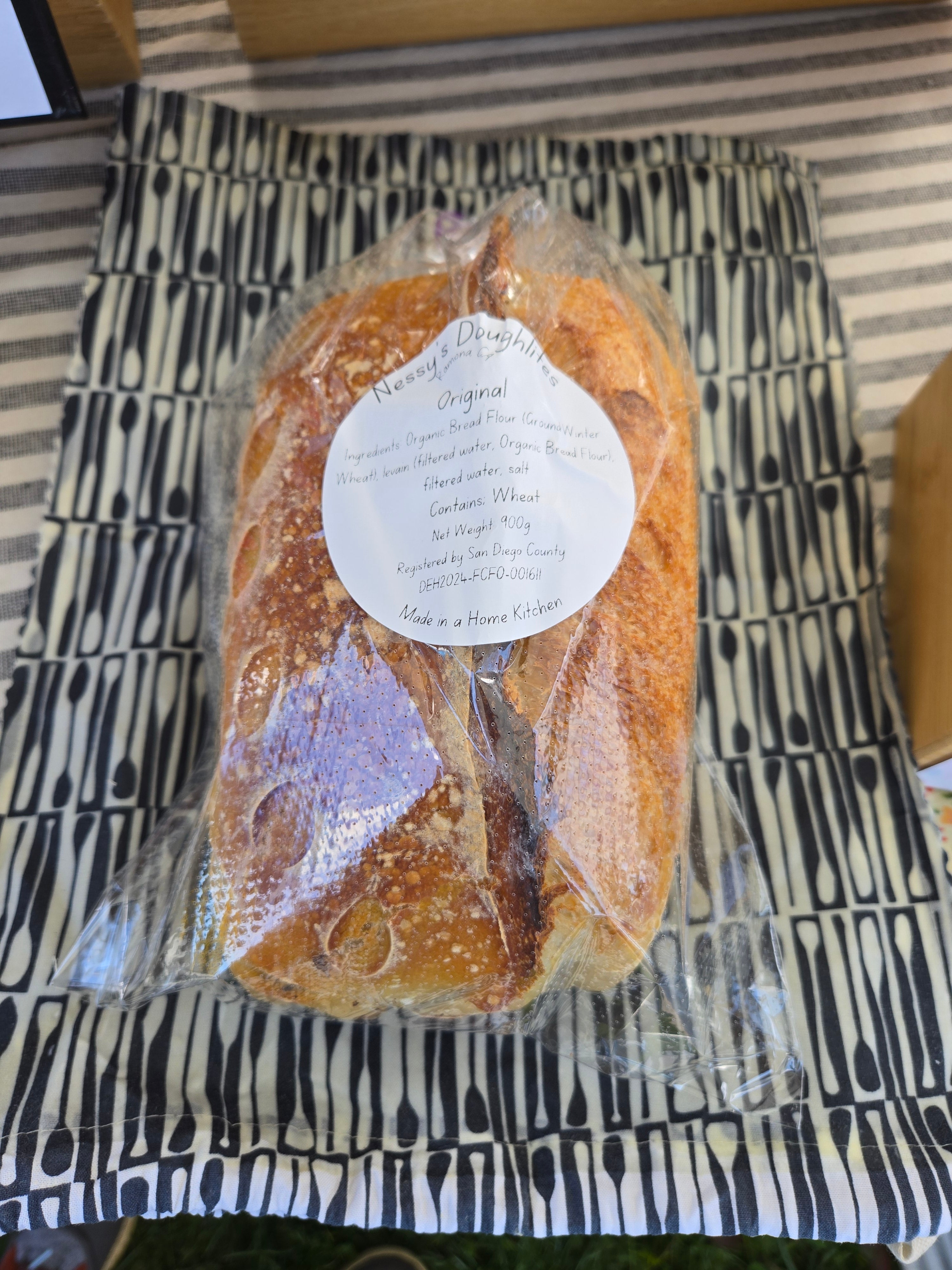 Sacchetto per il pane in cera d'api. Grande borsa da 30x40 cm realizzata in 100% cotone e rivestita con una miscela di cera d'api per mantenere freschi il pane o altri alimenti tra un utilizzo e l'altro.